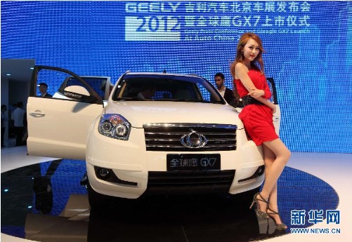 4月23日,北京國際汽車展覽媒體接待日上,吉利新款SUV全球鷹GX7首發(fā)。當(dāng)日,2012(第十二屆)北京國際汽車展覽會在北京中國國際展覽中心拉開帷幕,來自德國、法國、美國、日本、中國等14個(gè)國家和地區(qū)的2000余家廠商參展,本屆北京車展共展出車輛1125臺,其中全球首發(fā)車120臺。國產(chǎn)自有品牌汽車新能源電動車和新款首發(fā)車競相亮相。(來源:新華網(wǎng))