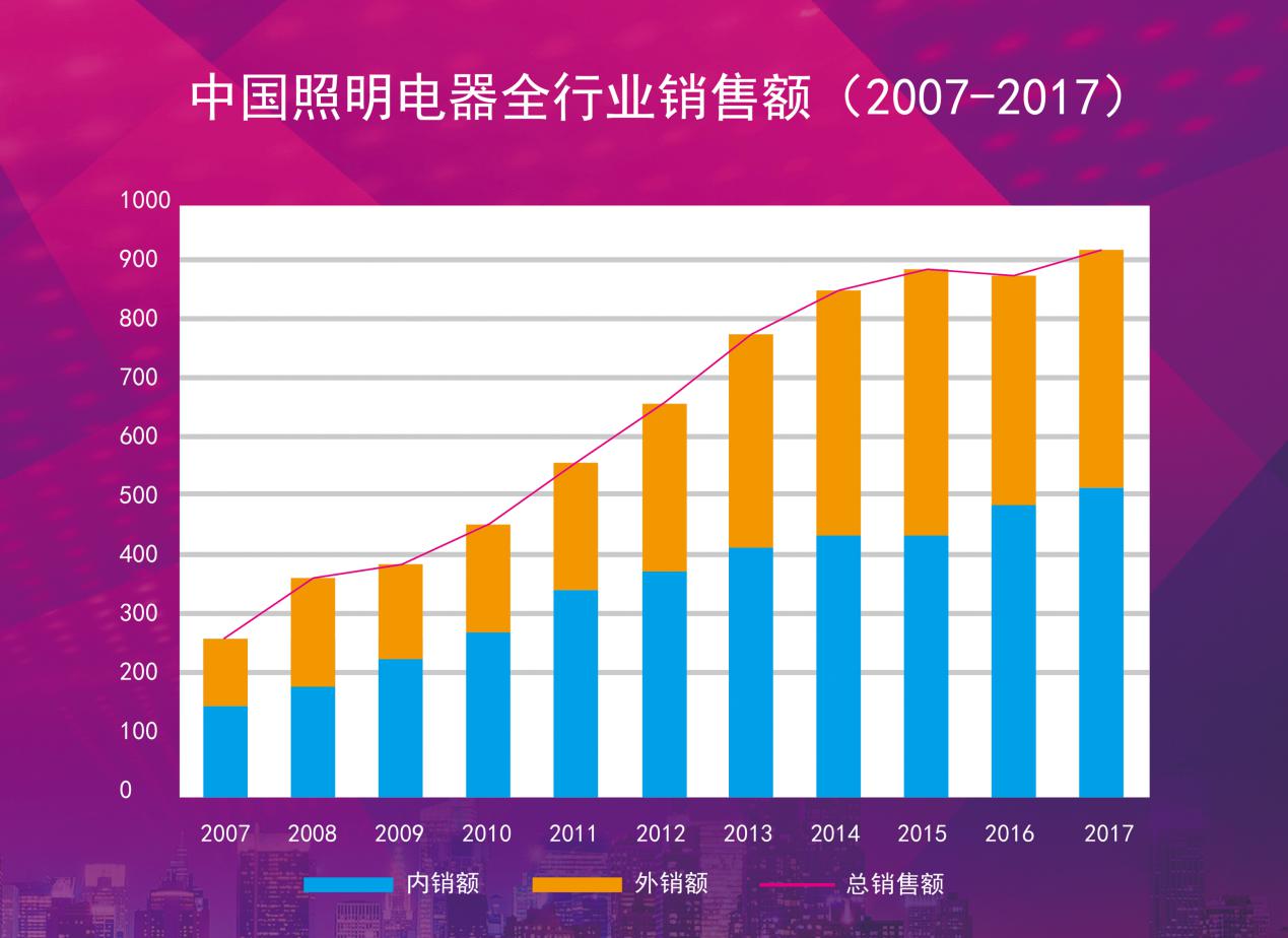 近年來,我國照明行業(yè)的發(fā)展堪稱神速。以去年為例,2017年我國照明電器行業(yè)整體銷售額約為5800億人民幣,比2016年的5600億人民幣增長約3.6%。外銷也從2016年的388億增長至412億美元。