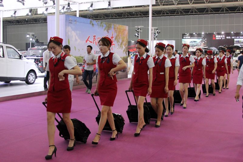 裝扮成空姐的小姐姐們提著手提箱,是國(guó)博一條靚麗的風(fēng)景線(xiàn)
