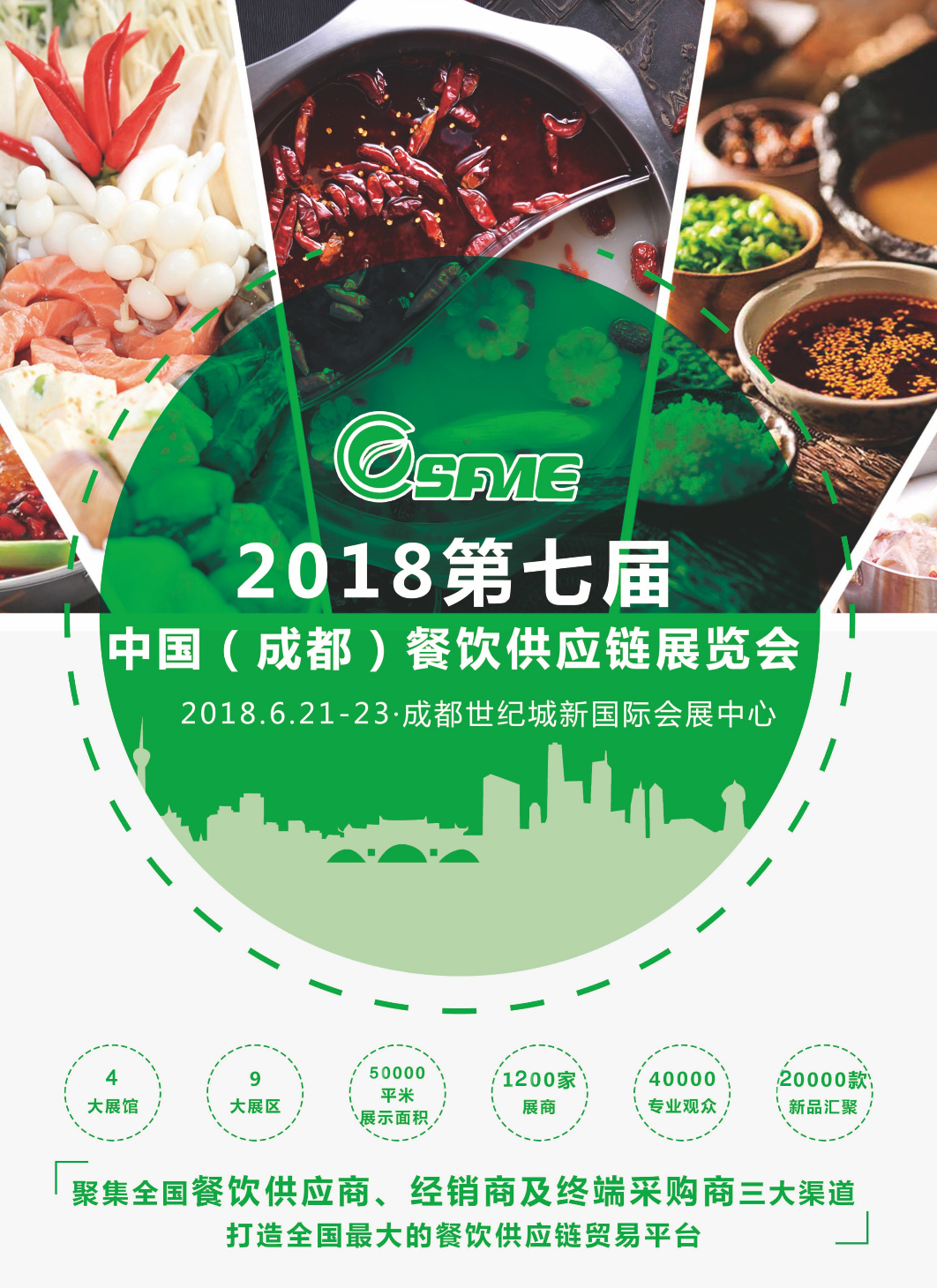 2018第七屆中國成都餐飲供應鏈展覽會將于6月21-23日在成都世紀城新國際會展中心4-7號館盛大開幕,規(guī)模突破50000㎡,全新規(guī)劃火鍋食材及用品、餐飲原輔料、餐飲設備及酒店用品、烘焙和咖啡飲品4大展館、9大展區(qū),預計有全國1200家知名企業(yè)匯聚,40000名專業(yè)觀眾前來參觀,同期將舉辦10余場行業(yè)論壇、交流會、對接會、品鑒會、專業(yè)賽事等豐富活動,嗨翻全場!