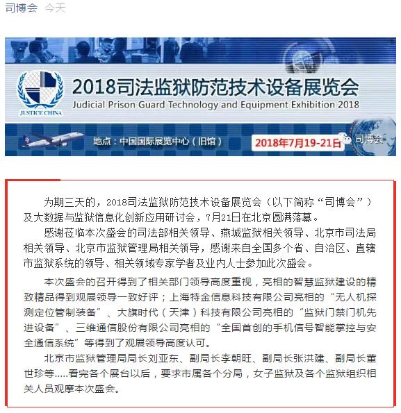 - 2018司法監(jiān)獄防范技術(shù)設(shè)備展覽會(huì)圓滿落幕