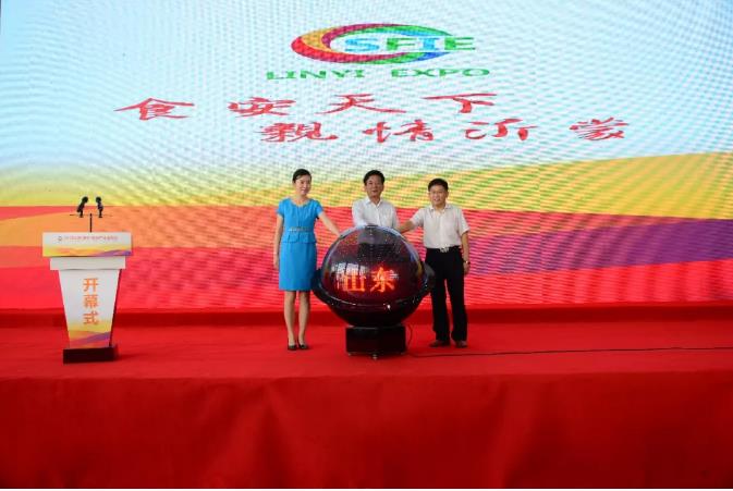 山東省商務廳副廳長 王洪平先生、山東省農業(yè)廳二級巡視員 姜衛(wèi)良先生、臨沂市委副書記張宏偉女士共同點亮啟動球。