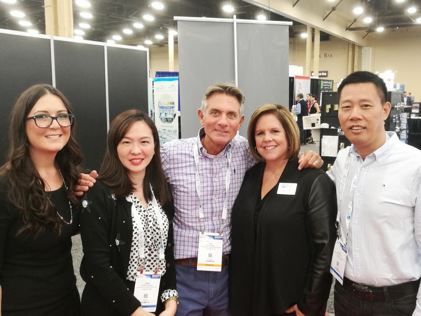 CSE國際部經(jīng)理 鄭元元(左二)CSE項目總經(jīng)理 靳朝貴(右一)與美國泳池展主辦方合照