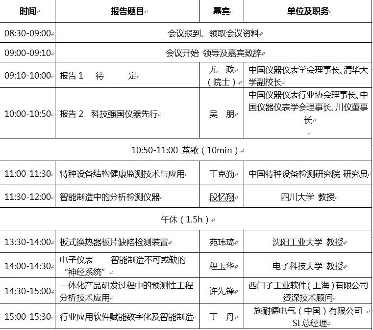 2019第三屆中國儀器儀表與智能制造高峰論壇議程-成都