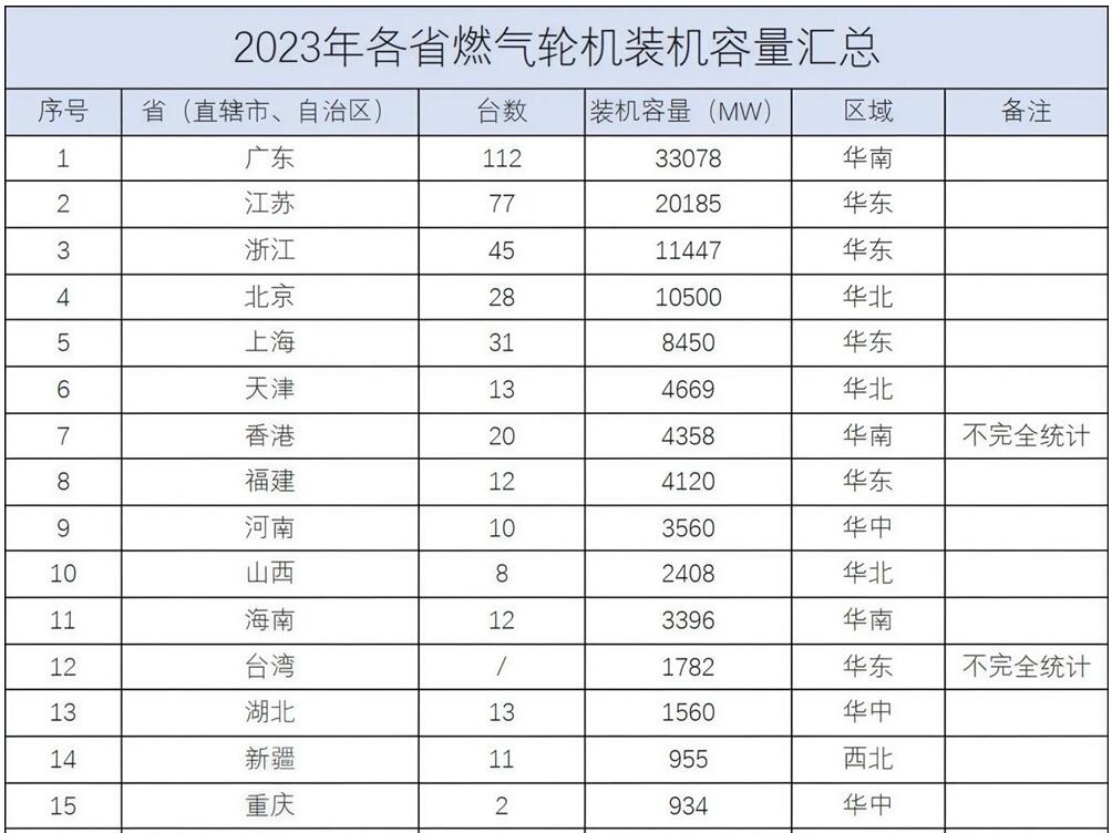總臺(tái)數(shù)430!2023年度各省燃機(jī)臺(tái)數(shù)及裝機(jī)容量一覽